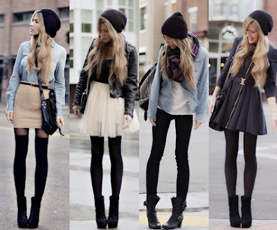 THE formula: high-waist skirt + tights + platform shoes |